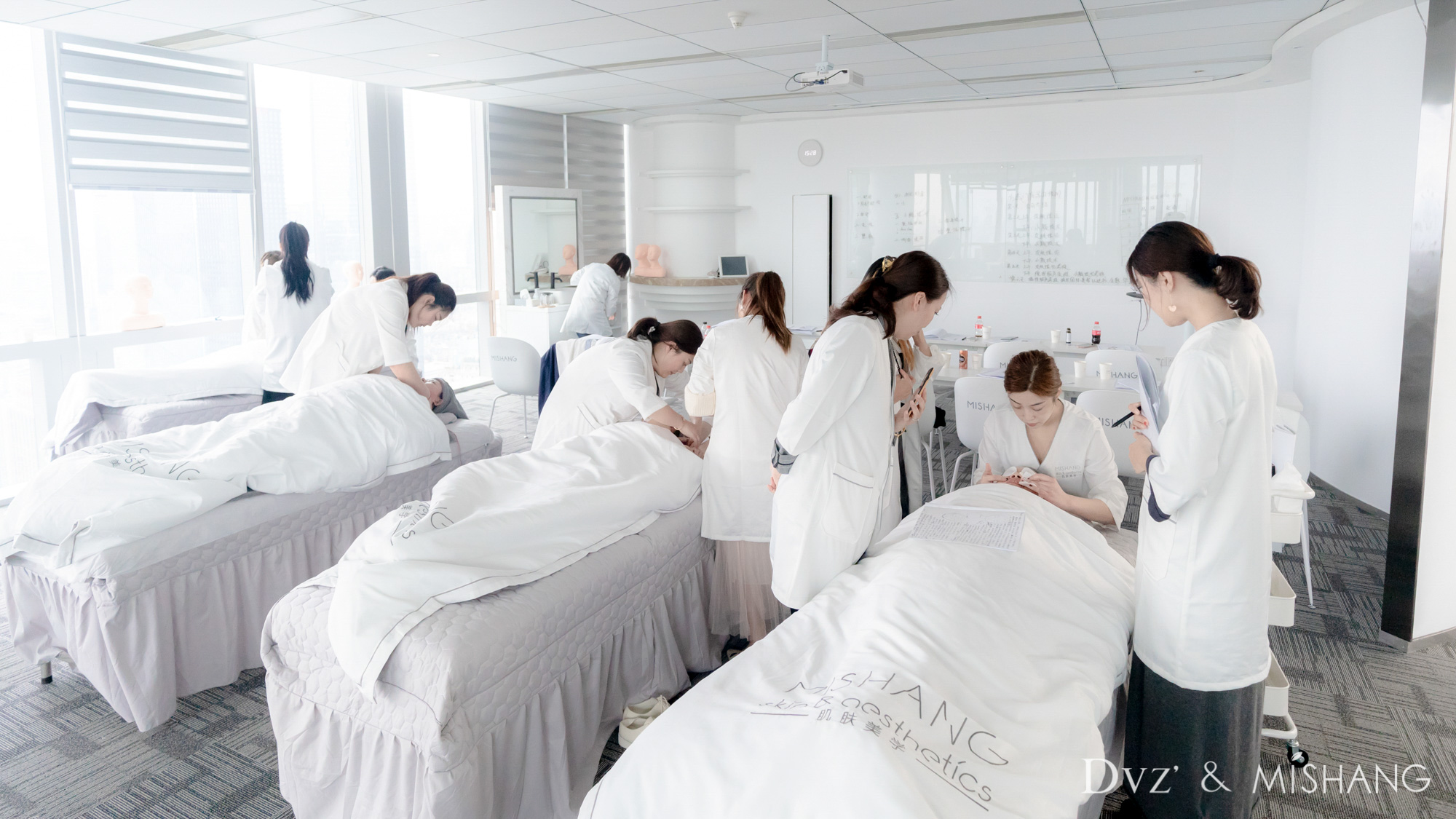 MISHANG肌肤美学 · 皮肤管理培训课程重视互动教学,采取小班授课的方式,让学员能够和老师能够一对一沟通,精准教学。