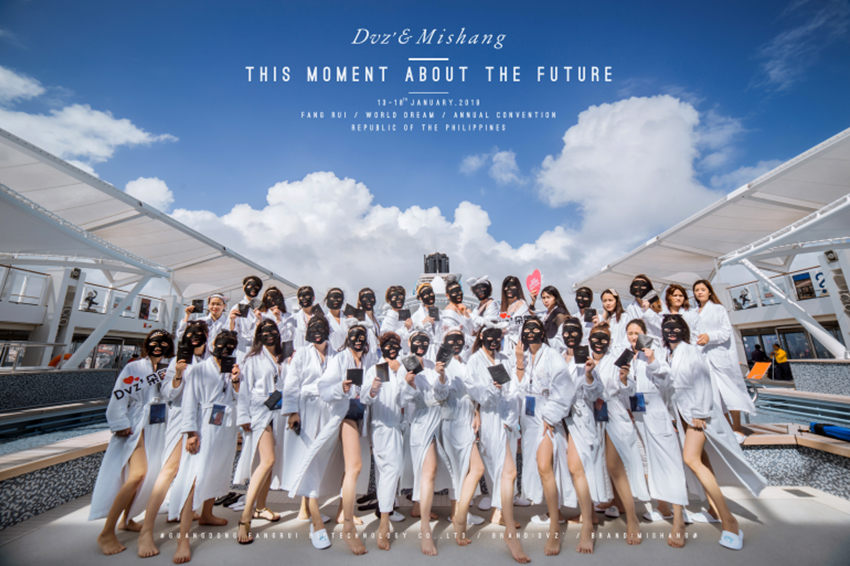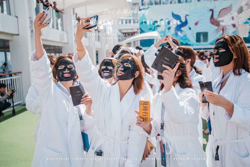 “那中午在甲板上一群人敷面膜也是你们公司的咯?”