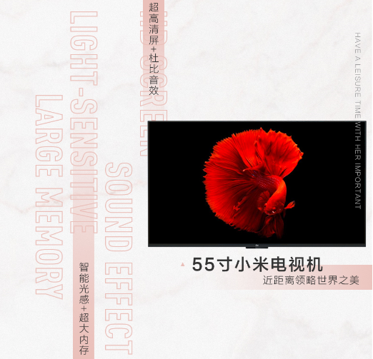 55寸小米电视机,超高清屏+杜比音效+智能光感+超大内存,