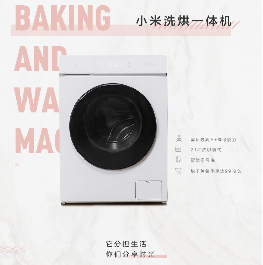 小米洗烘一体机,具备国际最高A+级洗净能力,