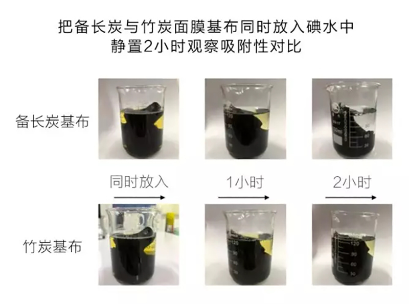 通过浸泡碘酒试验,肉眼可见,相比于竹炭,备长炭的吸附性能超强。